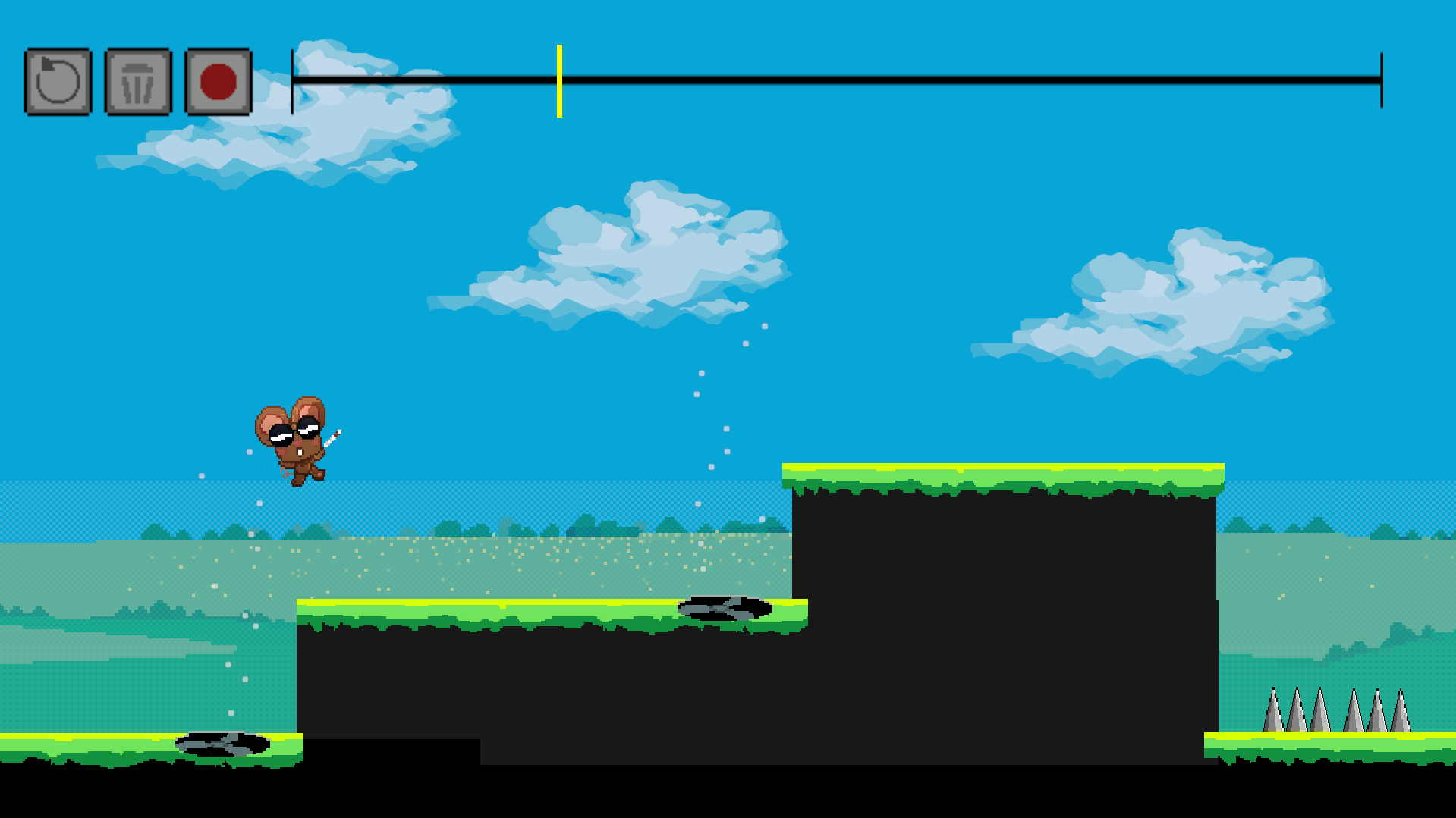 I love the idea, the character and music. But I am having a hard with the record feature. I know what it does but my brain isn't understanding where to place it while things are moving. If you were to bring this to a full game, which I think you should, let the player control the flow of time with A and D. That will help me figure out where to place the record feature.